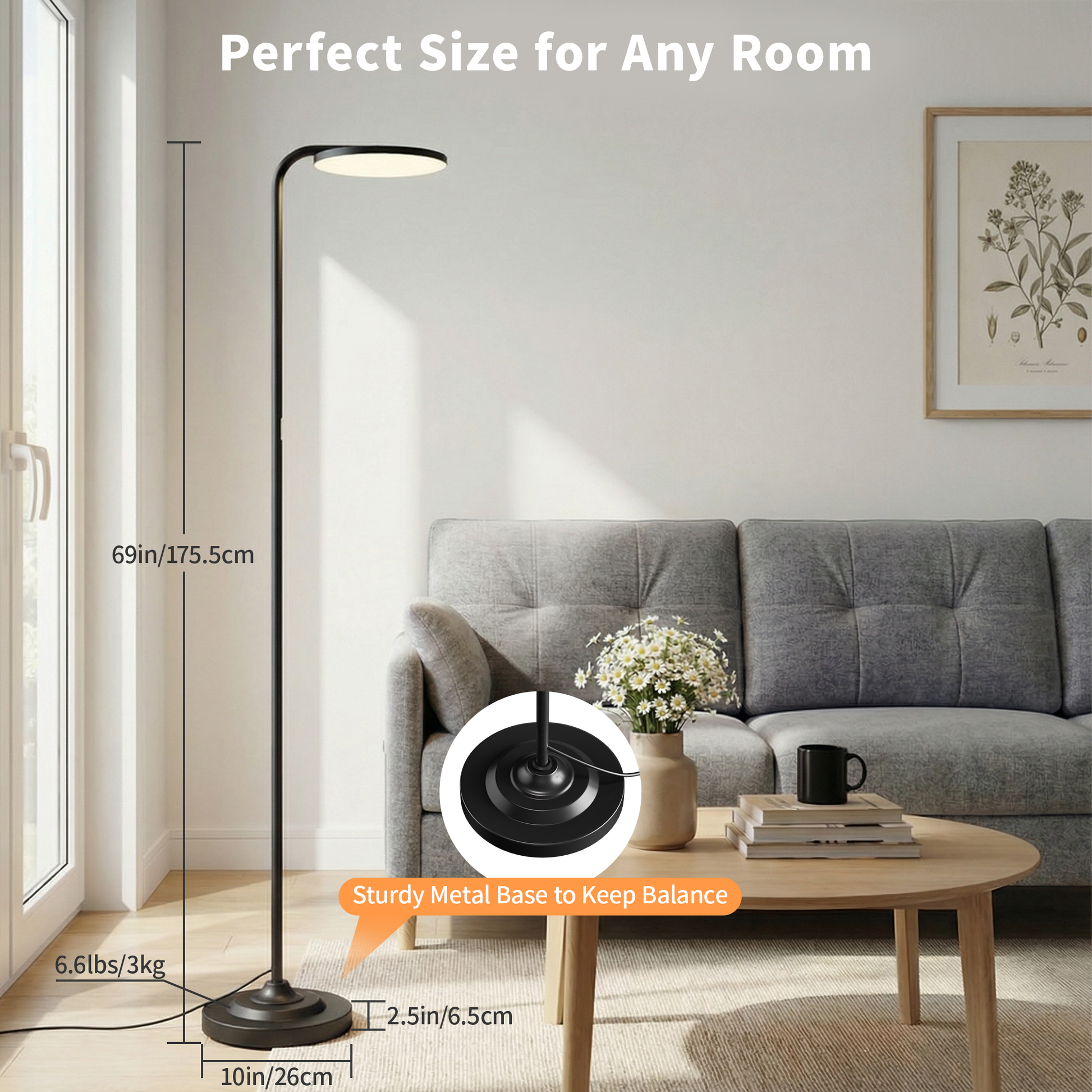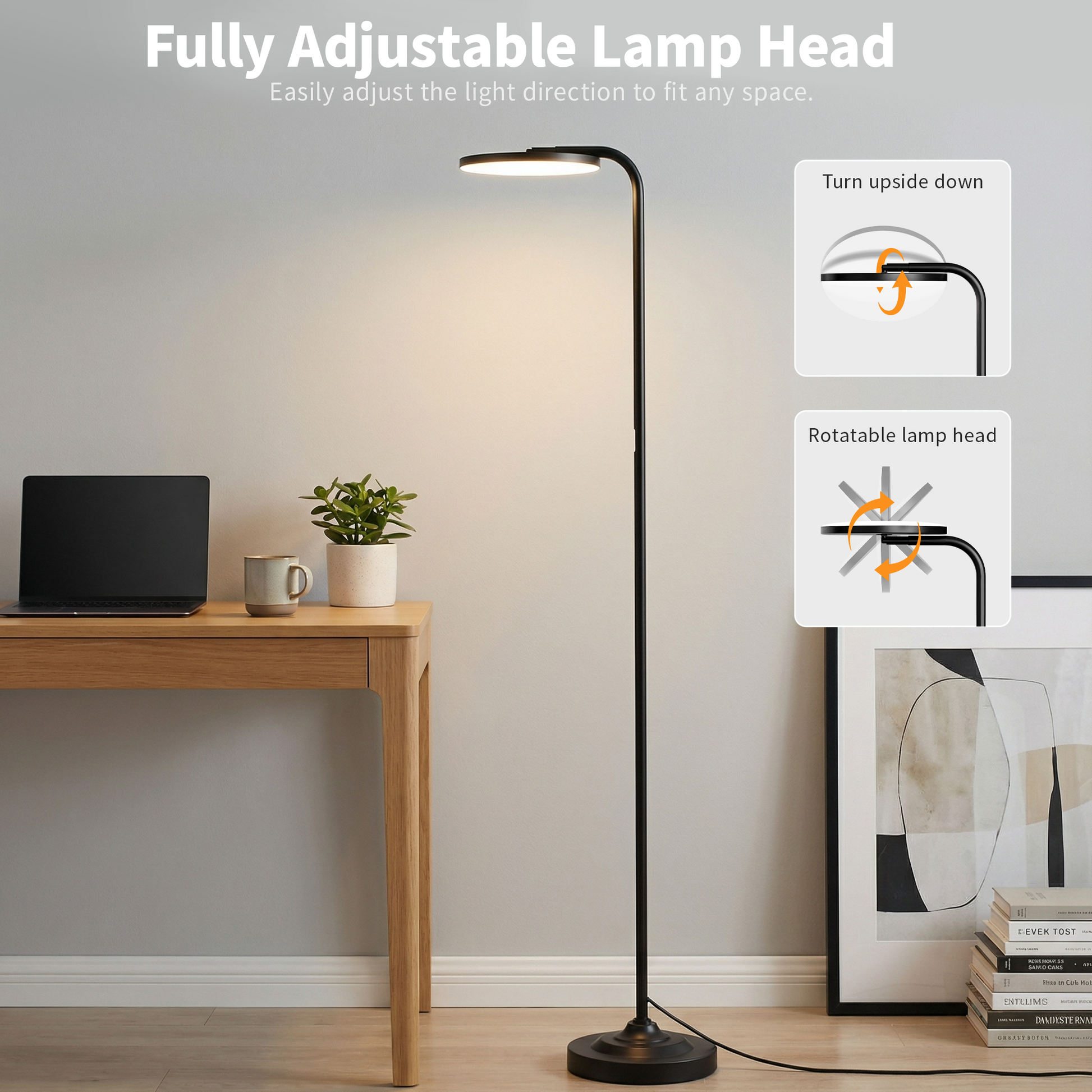 - 36W Super Bright & Limitless Lighting: Introducing our innovative LED floor lamp with 36W of ultra-bright power, designed with optimized optics to light up your entire room. Its 350° rotatable omnidirectional head and 69-inch height provide unlimited lighting angles for any occasion. Point it upward for a striking torchiere lamp or angle it down for the perfect reading light—this versatile design adapts to your every need.