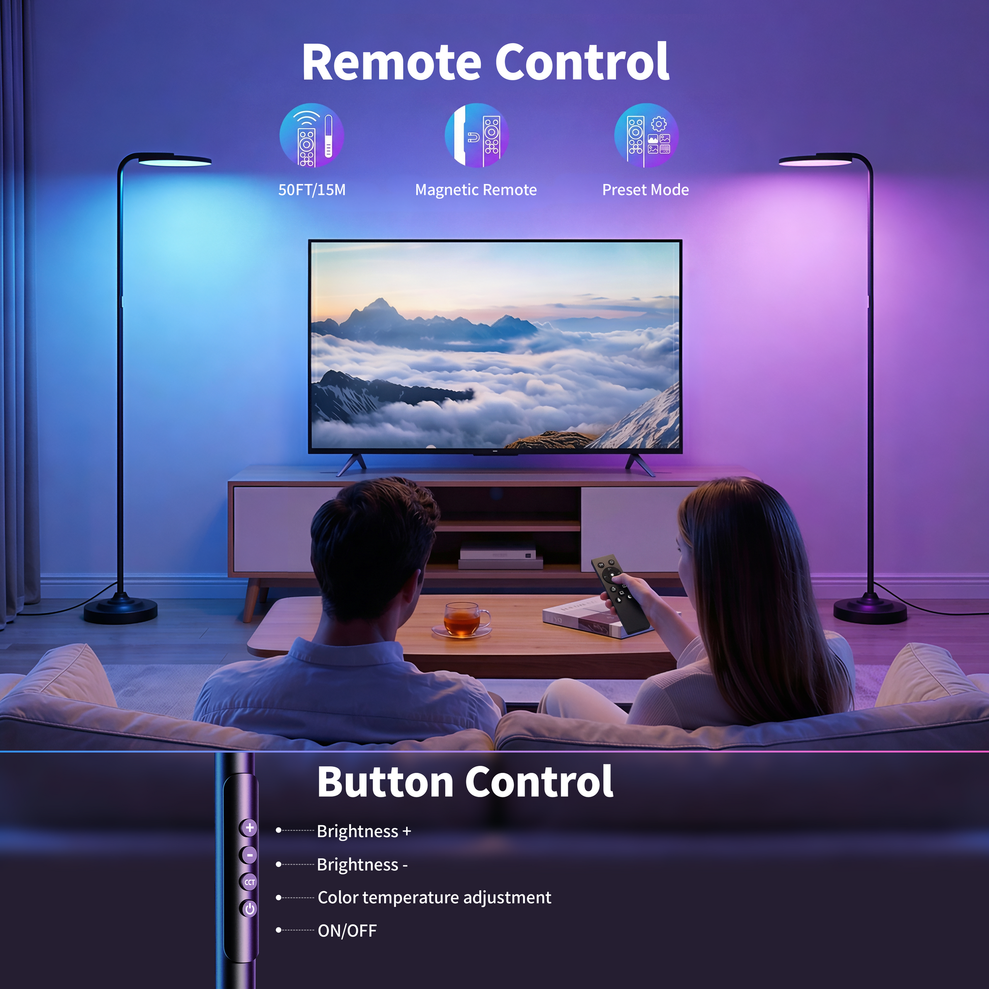 - Upgraded Button & Remote Control: Easily control brightness, color temperature, preset modes, and timer through the built-in button on the lamp pole or the included magnetic remote. The remote attaches to any metal surface, including the lamp pole, so it’s always within reach. Assembly takes only 5 minutes—simply follow the instructions to connect the lamp from top to base.