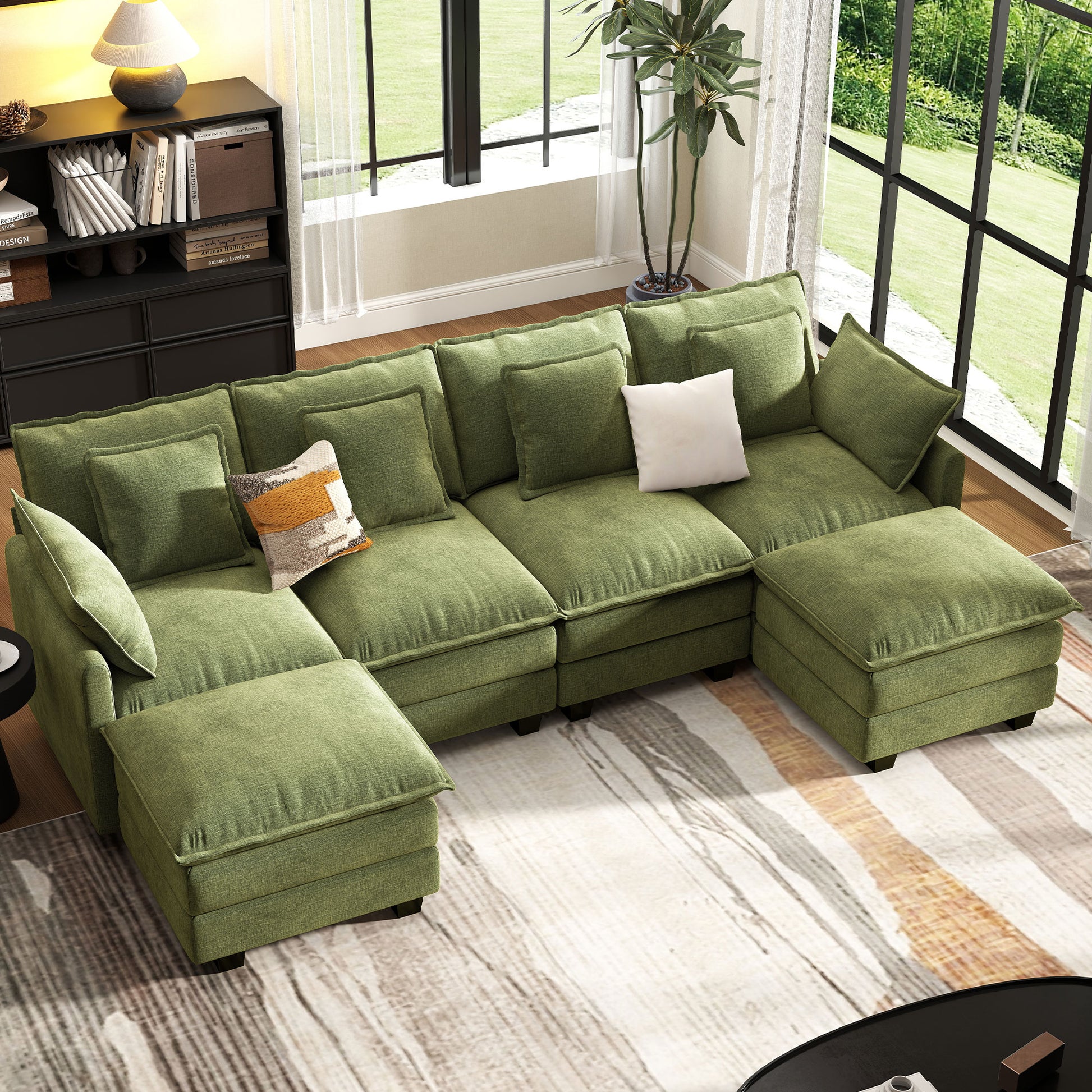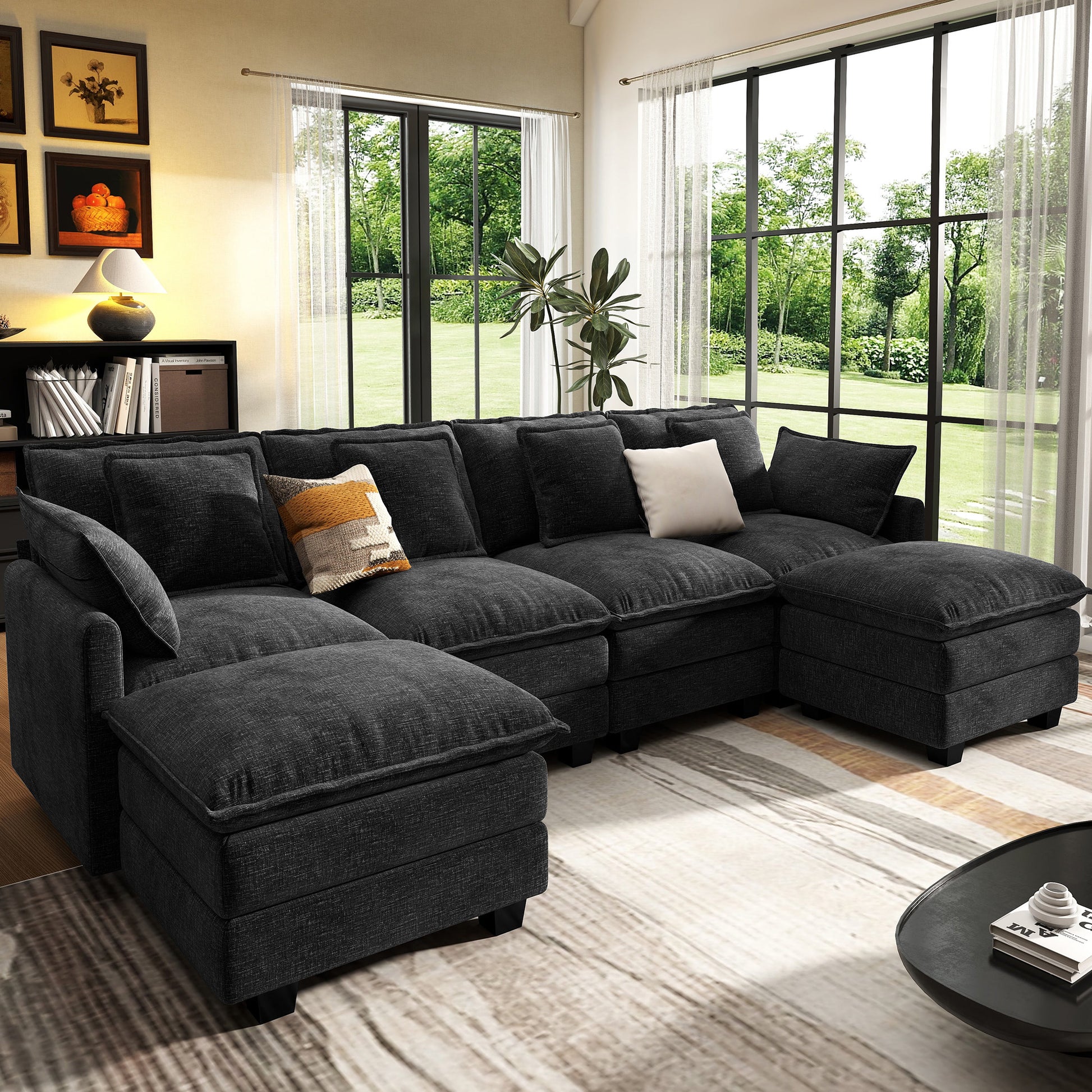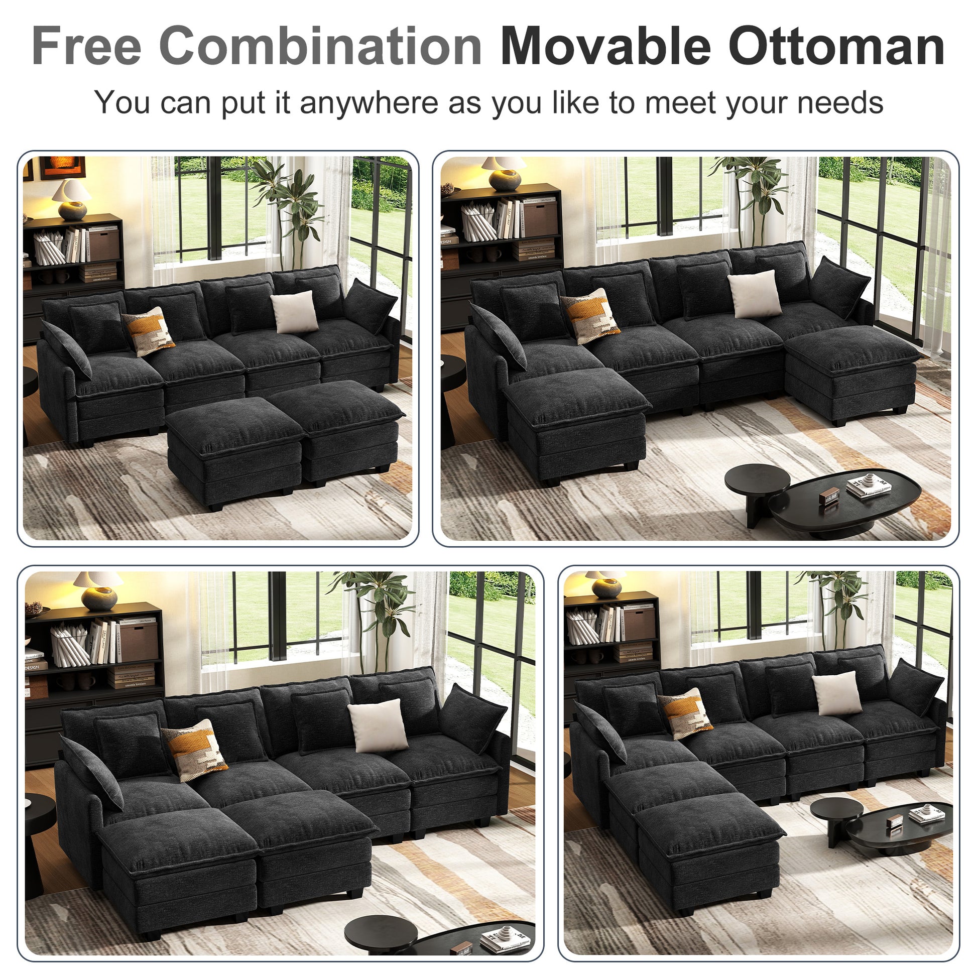 Flexible Modular Couch: The modular sectional sofa features a modern design that allows for easy switching and flexible adjustments. It can be configured into an L-shaped sofa, U-shaped sofa, sofa bed, and other stylish combinations. Equipped with two movable ottomans, you can freely rearrange your setup for lounging, resting, or entertaining—perfectly adapting to your lifestyle and space needs