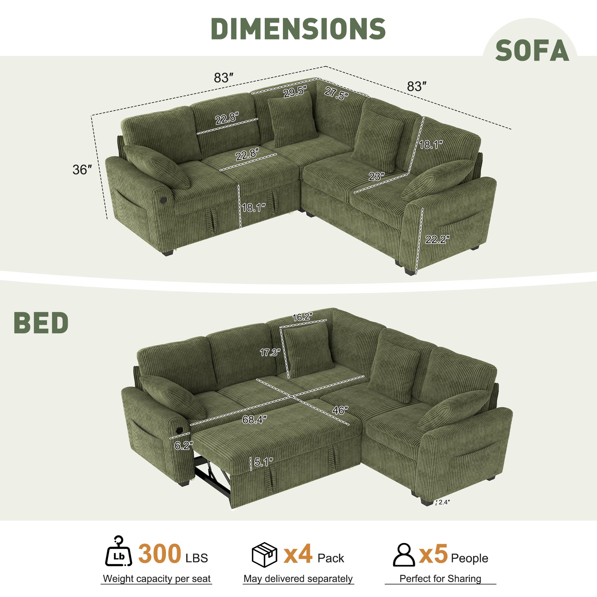 - Comfortable, Durable, and Stylish: Measuring 83" W x 83" D x 36" H, this sofa features a sturdy wood and metal frame with secure safety connectors, with each seat supporting up to 300 lbs. The breathable, soft corduroy upholstery offers a cozy, luxurious feel. Cushions are crafted with high-quality foam and springs, while plush foam pillows provide extra comfort and support. Its elegant design adds a sophisticated touch to any living space.